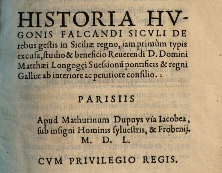 Edizione digitale del De rebus circa regni Siciliae curia gestis attribuito a Ugo Falcando, a cura della dr.ssa Martina Pavoni